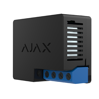 Radio channel controller for remote control of low current equipment. The relay connects wirelessly to the Ajax Hub which connects to the remote control which activates electric locks, gates and swing gates, rolling shutters and blinds, and to restart modems and routers.